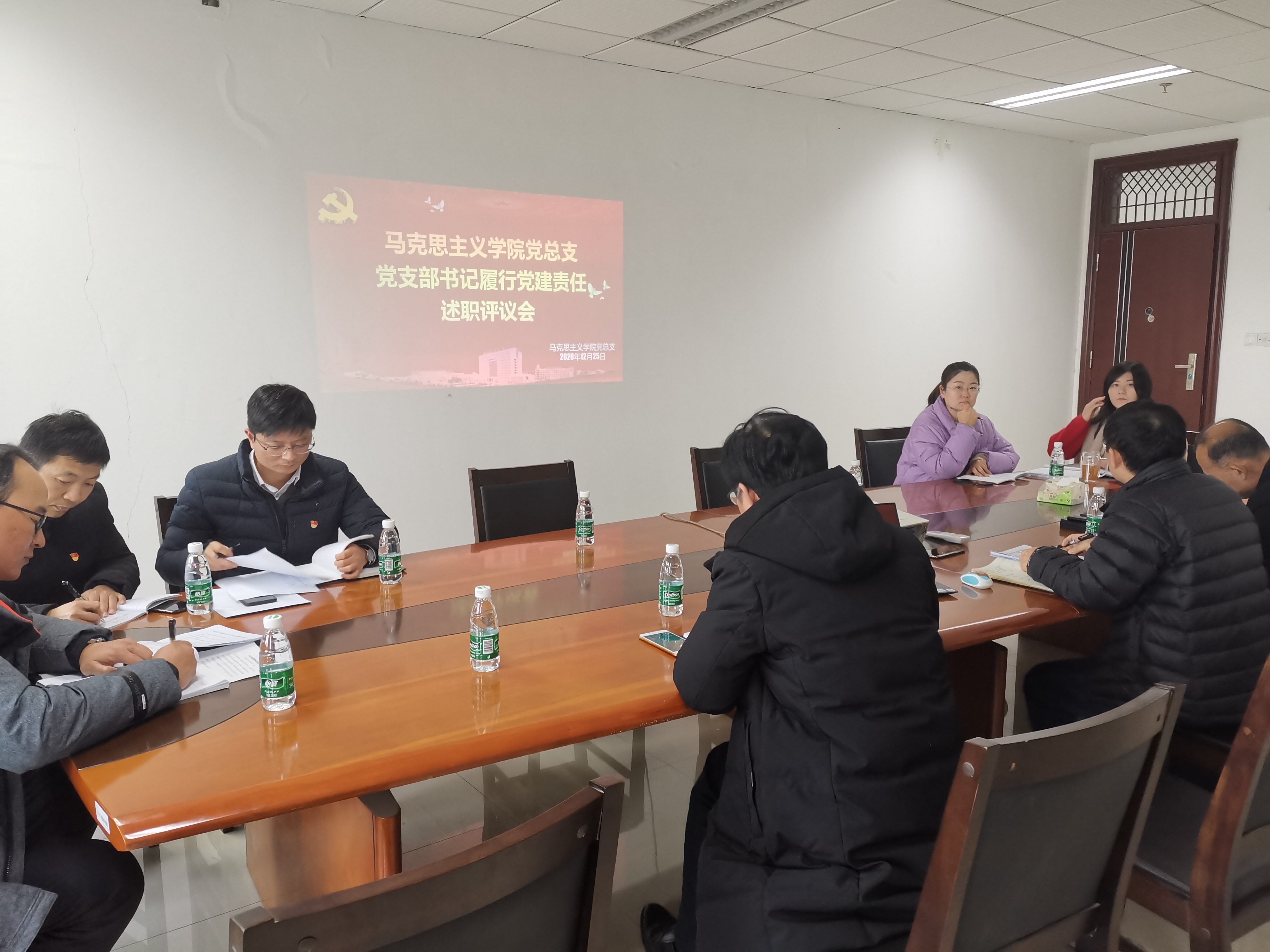 根据校党委《关于开展2020年度基层党组织书记履行党建工作责任述职工作的通知》要求,马克思主义学院党总支于12月25日在B18-1121室召开了2020年度党支部书记履行党建工作责任述职评议活动。全体党总支委员、各党支部书记、支部委员、党政秘书共13人参加了此次活动。