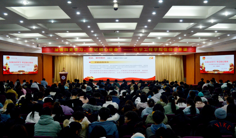 为推动深入学好党史、新中国史、改革开放史、社会主义发展史,传承红色基因,坚定理想信念,化学工程学院于12月21日在图书馆报告厅开展了“加强四史学习,牢记初心使命”信仰公开课,特邀江苏省高职高专院校思政课中青年教师教学竞赛特等奖获得者曾晓老师主讲。