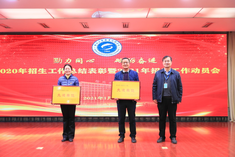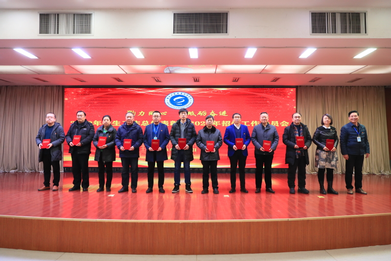 大会对2020年招生工作先进单位和先进个人进行表彰。纪委书记徐勇宣读表彰文件,校领导为先进单位和先进个人颁奖。王艳秋同志代表获奖二级学院(部)发言,徐忠杰同志代表获奖招生团队成员发言,分享招生做法、感悟并提出宝贵意见建议。