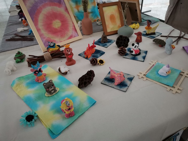 此外,课程教学还请到了徐州市非遗传承人高继汉老师开展非遗文化讲堂,讲座上,高老师从泥塑非遗文化历史源流、制作工艺和传承意义等方面扩展同学们的知识面,提高同学们的鉴赏能力。以“非遗匠心、传统元素”为主题和同学们一起进行泥塑作品创作,一个个惟妙惟肖,憨态可爱的泥塑作品在同学们的手下诞生。