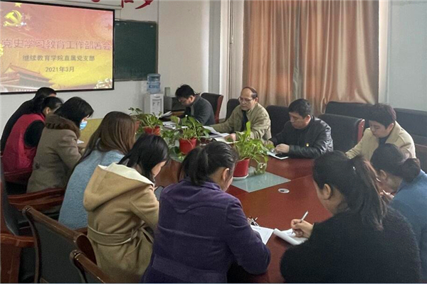 为贯彻落实中央、省委、捕鱼达人破解版 关于党史学习教育的重要精神,3月30日上午,继续教育学院直属党支部在B02-205会议室召开全体党员会议,会议由直属党支部书记孙勇主持。