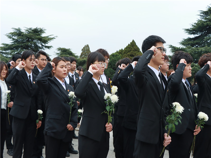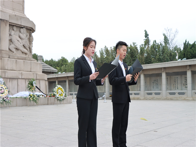 活动当日,师生代表们佩戴团徽,手握白花,整齐有序地踏入淮海战役纪念塔园林。团委副书记庞世华宣布“学党史 强信念 跟党走”学习教育主题团日活动正式开始。青年学生们怀着对烈士的崇敬之情,脱帽肃立,齐唱中华人民共和国国歌,默哀致敬先烈。