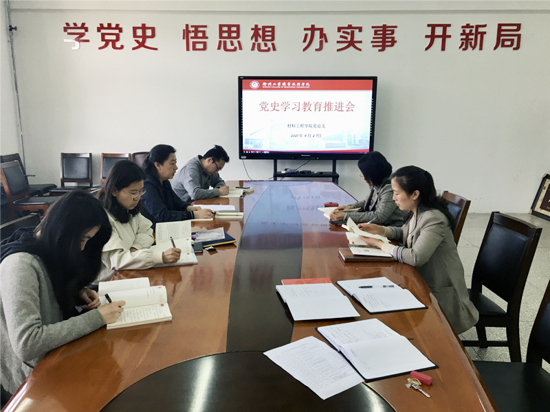 4月27日下午,材料总支在B05-306会议室召开党史学习教育推进会,总支书记李素婷主持会议,总支委员、支部书记参加会议。