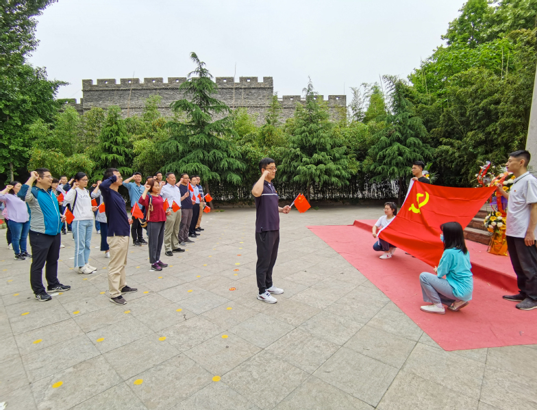 随后,全体师生党员瞻仰了“运河支队四百烈士碑”,韩永印副书记带领全体党员高举右手庄严宣誓,重温入党誓词,表达为共产主义奋斗终身的坚强信念。
