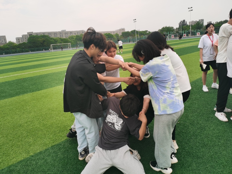 本次素质拓展以团队合作的形式开展活动,共设有解开千千结、无敌风火轮、信任背摔、盲人方阵、珠行万里、信任之旅、众志成城七项活动。作为热身活动,“解开千千结”在团队成员的相互配合中,将大家带入活动状态,活动体验中引导同学们在生活中遇到小结时,能够有足够的耐心和信心,畅通渠道,化解矛盾;无敌风火轮、珠行万里、众志成城三个活动考验着团队成员的配合程度,在活动中培养学生的合作意识,让学生体会合作的快乐和意义;信任背摔、盲人方阵、信任之旅三个活动增强团队之间的相互信任和理解,帮助同学们增强信心,战胜恐惧。活动过程中,同学们时时交流感悟、分享心得,现场气氛热烈,操场上充满了欢声笑语,处处可以看到团队之间的互助与合作。