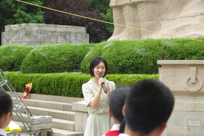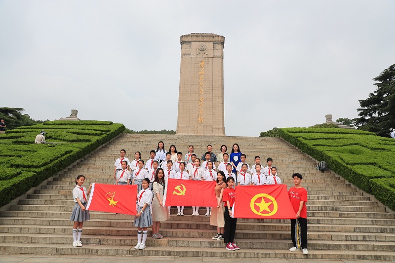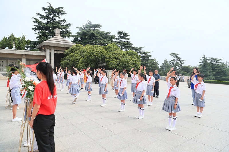 大小学师生一起来到淮海烈士纪念塔缅怀先烈们的丰功伟绩、追忆烈士们前仆后继、广大群众奋勇支援前线的英雄事迹。淮塔下,青年大学生带领少先队员们开展宣誓活动,全体师生高声歌唱《没有共产党就没有新中国》,以歌声礼赞革命年代、缅怀红色岁月。