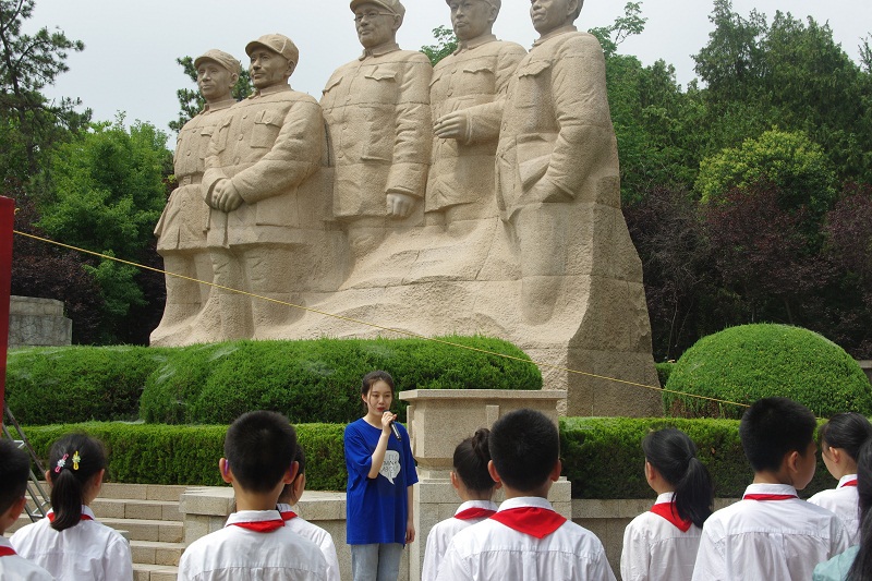 在淮海战役前委雕像前,青年学习社的李雨露、马兆杰、苏苗蕾同学分别为小学生们讲述了“王杰烈士”、“淮海战役中的马大娘”、“英烈陈延年”的故事,马克思主义学院侯星老师对三个红色故事进行了点评和总结,让小学生们明白党是从一次次艰难斗争中顽强生长、壮大的;认识到伟大中国人民的强大力量,激励他们从小树立坚定的理想信念,做社会主义合格的接班人和建设者。