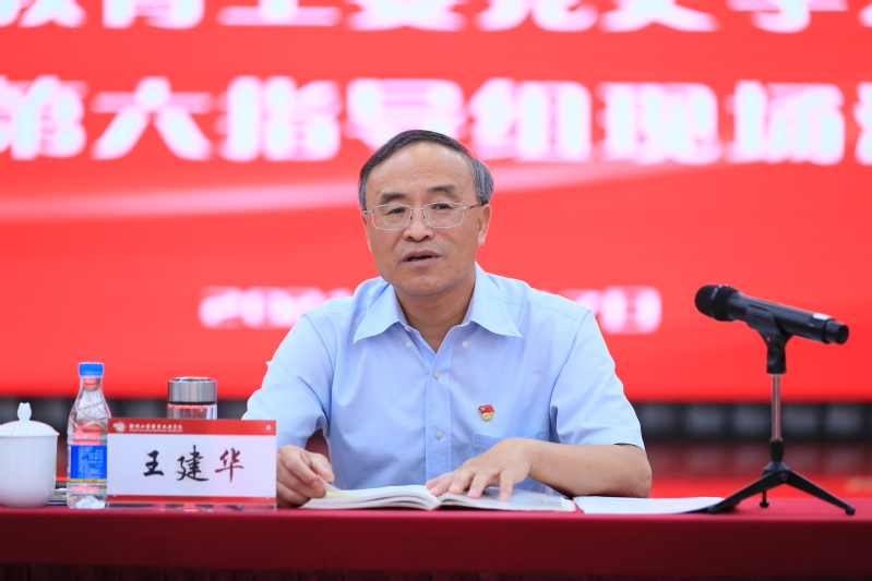 王建华组长作总结讲话,中央和省委高度重视党史学习教育,我省党史学习教育受到中央指导组的肯定,在深入抓好学习、扎实为民办事、用好可视化教材、营造浓厚氛围等方面取得进展成效。王组长结合上级要求,就扎实做好下一阶段工作提出三点意见:第一,坚持学研结合,突出学深学透,进一步领悟思想伟力;第二,深耕文化资源,突出活学活用,进一步赓续红色血脉;第三,持续办好实事,突出办理办成,进一步推动落地见效。最后,结合当前和下一阶段工作强调具体工作要求。