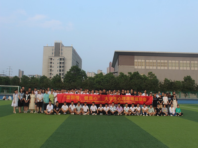 为迎接中国共产党成立100周年,增进自爱互爱、自主互助,增进团队合作能力,启发学生与时代共舞,与同伴协行,6月28日下午,由学工处大学生心理健康教育与咨询中心主办,机电工程学院心理健康教育工作站承办的“爱国情 健康心”心理趣味运动会在操场开展,由各学院心理委员组成的代表队及啦啦队同学约100余人参加此次活动。