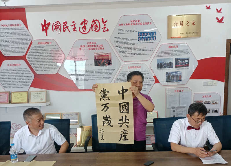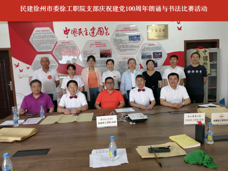 举办朗诵与书法比赛。6月30日下午,民建徐州市委徐工职院支部在民建会员之家开展庆祝中国共产党成立100周年朗诵与书法比赛。活动邀请校民进徐州市科技支部主委徐惠彬等同志担任评委。在朗诵比赛中,会员们通过朗诵诗词、朗诵散文等形式,展现了民主党派与中国共产党团结合作的奋斗历程。书法爱好者现场泼墨书豪,激扬文字,用最美的文字抒发了对中国共产党的热爱和敬佩。