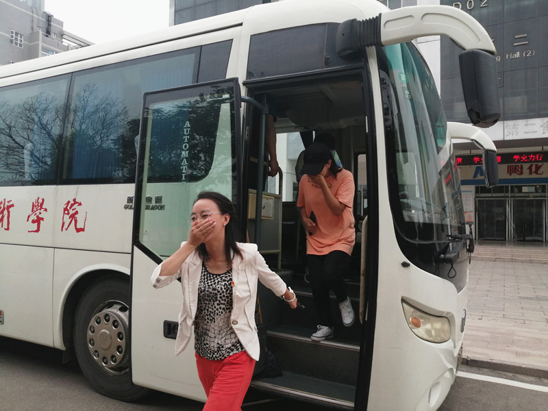 本次演练活动,后勤服务中心和保卫处高度重视,制订了详细的演练方案,并提前熟悉演练现场及疏散注意事项。演练以校车行驶中突发自燃,乘车人员安全逃生为模拟科目。车辆行驶中,车尾突发自燃冒出浓烟,驾驶人员立即将车辆停靠路边,并打开车门引导乘车人员手捂口鼻,弯腰有序迅速撤离到安全地带,并清点人数,确保无人员遗漏。在应急疏散同时,驾驶人员按照预定方案报警后并展开自救,手持灭火器对汽车模拟起火点喷射,阻截火势蔓延。