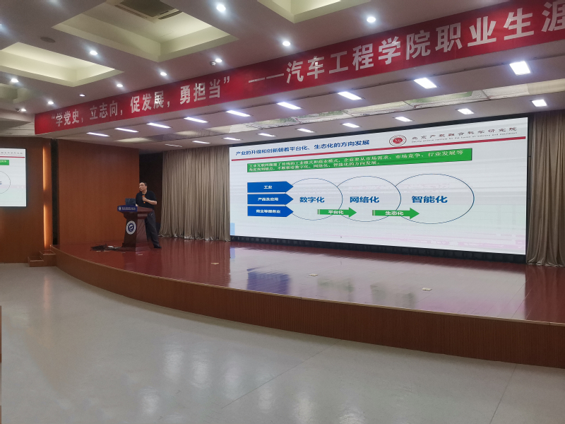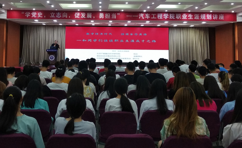 为推进就业指导工作,帮助大学生明确学习目标,促进学生树立职业意识,更好的规划大学生活,适应社会,7月8日,汽车工程学院于图书馆报告厅举办“学党史,立志向,促发展,勇担当”职业生涯规划讲座。本次讲座由北京产教融合科学研究院院长、中国机器人产教融合联盟专家委员会副主任委员李杰教授主讲,汽车工程学院党总支书记顾广辉老师主持。