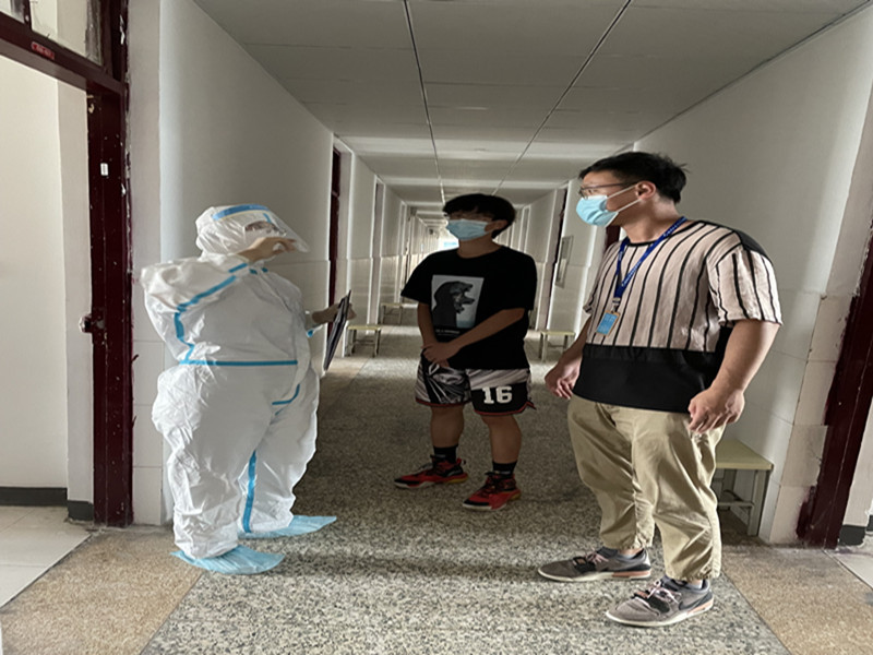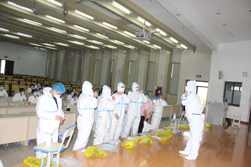 培训会结束后,全体疫情防控辅导员和宿管中心工作人员参与了疫情防控规范化操作演练,防控演练主要是结合医务所接到疫情防控辅导员的送诊报告到接诊后的诊断和诊断后的处理以及将相关学生送到隔离区等一系列规范操作,让全体参训人员参与并体验疫情防控的处理流程和规范的操作方法。