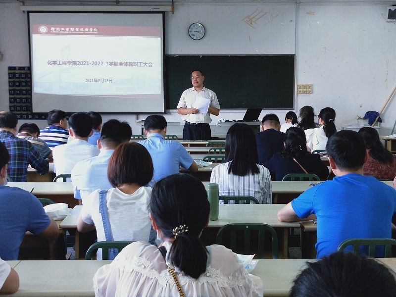 9月15日下午,化工学院分别在B08-219会议室和B08-309教室,通过线上、线下相结合的方式,召开全体教职工大会,传达捕鱼达人破解版 会议精神,安排部署新学期各项工作,会议由化学工程学院院长张雷主持。