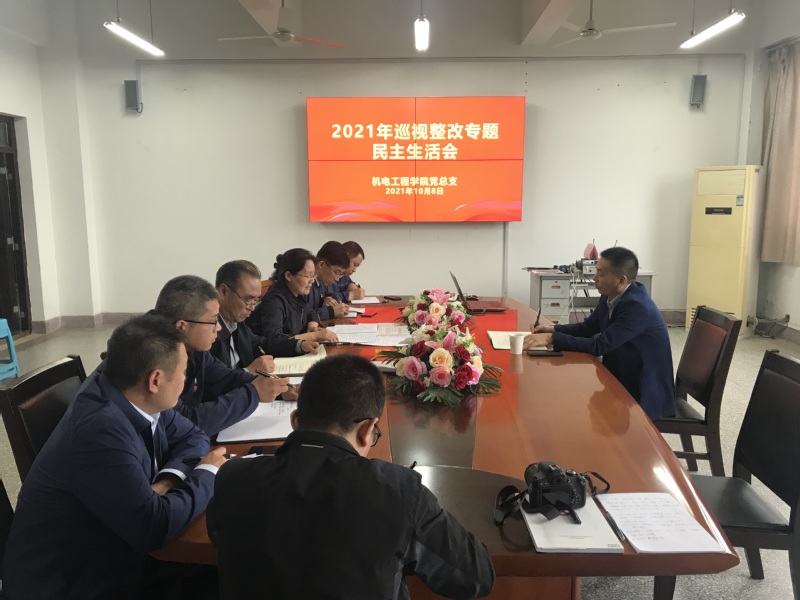 根据省委《关于召开巡视整改专题民主生活会和组织生活会通知》要求,按照捕鱼达人破解版 党委统一安排部署,10月8日下午,机电工程学院党总支领导班子巡视整改专题民主生活会在B16-305会议室召开。校党委委员副院长鲍桂楠到会指导,机电工程学院全体党总支委员参加了本次会议,会议由机电工程学院党总支书记王敏主持。
