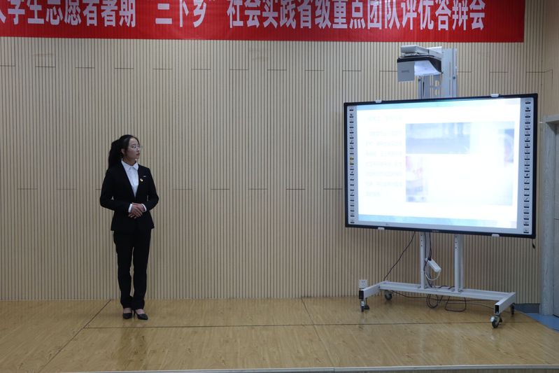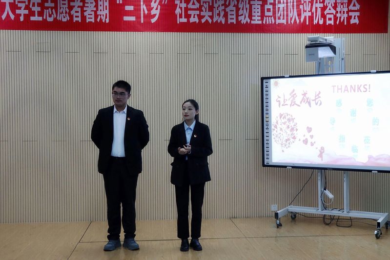 此次答辩会共有9支省级重点团队参加。在展示环节,答辩代表通过PPT展示以及精彩演讲从活动筹备、活动开展情况、活动成果、活动影响力等方面展开详细论述。各团队选题内容涉及党史学习、理论宣讲、乡村振兴、民族团结、城市治理等,足迹遍及江苏、山东、河北等地。在提问环节,各评委结合展示情况就实践内容、实践意义等进行提问并给出建议,各团队成员积极思考、认真作答,展现了我院青年学子积极参与社会实践的精神风貌。经评审,“暖心伙伴”暑期社会实践团、“信息助农业,援梦新乡村”暑期社会实践团、“追寻燎原星火 传承红色基因”红色寻访暑期社会实践团获得答辩前三名。