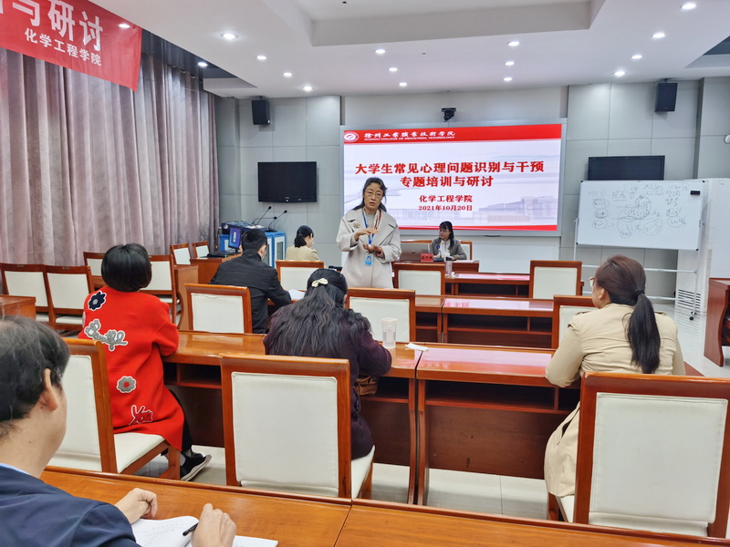 为深入落实省委巡视问题整改工作,增强辅导员和班主任老师识别学生常见心理问题、关注学生心理异常和干预心理危机的能力,10月20日下午,化学工程学院在图书馆视频会议室组织开展“大学生常见心理问题识别与干预专题培训研讨”活动,学院邀请捕鱼达人破解版 心理健康教育与咨询中心主任马千珉老师做专项培训,化学工程学院党总支书记吴红、副书记郝红艳和全体班主任、辅导员老师参加本次活动。