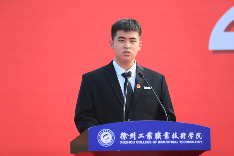 双高专业院长奖学金获得者、化学工程学院应用化工技术2101班祖旭辉同学发言。他代表新生表态,要坚定理想信念,做爱国主义的坚守者和传播者;努力学习技能,做工匠精神的代言人和践行者;勇担时代使命,做砥砺前行的奋进者和追梦人。