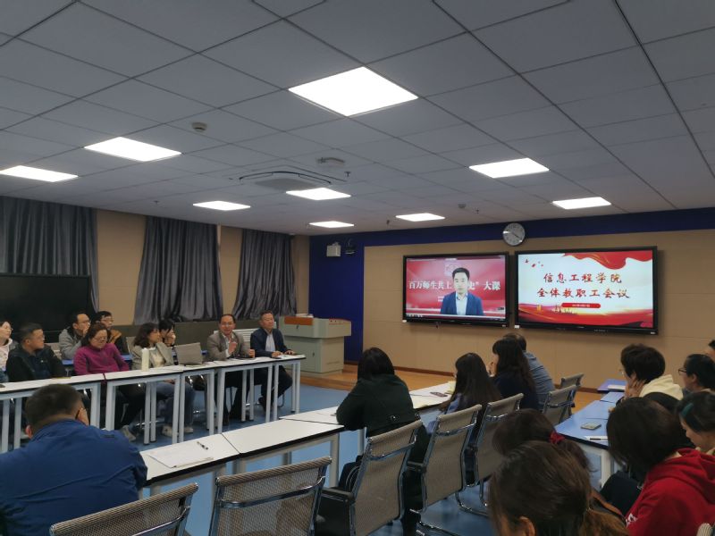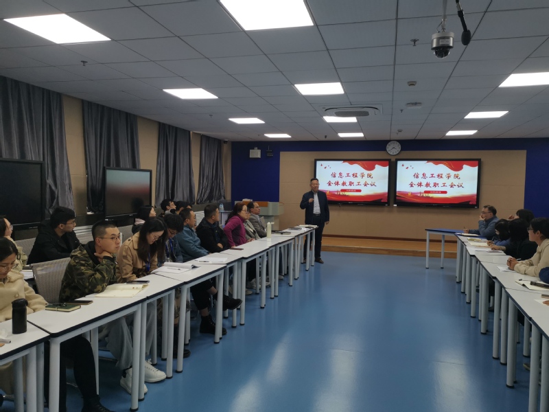 为强化过程性管理,总结并推进学院整体工作。信息工程学院于10月27日下午在B18-503召开期中全体教职工会议,院长陈祥章、党总支书记刘海涛、副院长杨勇分别就科技工作、党务工作、教学管理三项核心内容,围绕招生计划、技术服务、政治理论学习、工学交替等具体工作,对今后学院发展做出重要部署与要求。