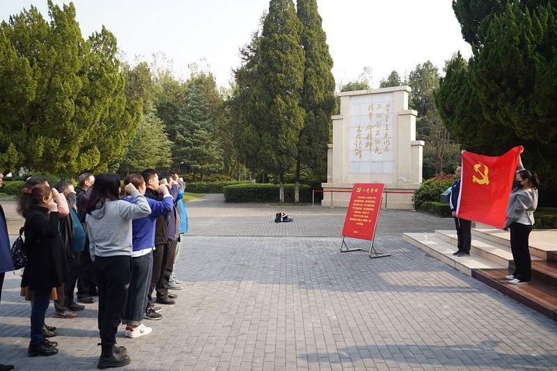 走出纪念馆,党员同志来到王杰烈士墓前,集体默哀,鞠躬致敬,瞻仰烈士陵墓,向长眠于此的王杰烈士致以无限的哀思和崇高的敬意。烈士墓前,面对鲜红的党旗,全体党员肃穆而立,紧握右拳,重温入党誓词,回顾铮铮誓言,感悟入党初心,牢记党员使命,缅怀先烈精神,时刻以王杰精神激励自己,不怕困难,不惧挑战,投身于高等职业教育事业发展。