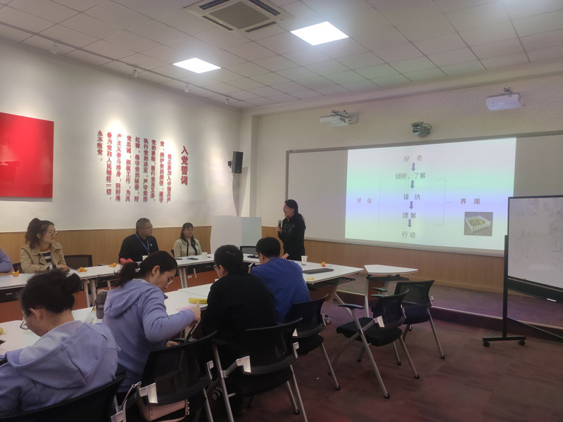 马老师的讲解生动细腻,深入浅出,给在座老师以极大的启迪,受到老师们的喜爱。她邀请现场教师进行体验式示范教学,以情景式角色扮演的方式帮助现场教师明白要放下改变学生的期待,要觉察学生的心理动态,充分认识学生,走进学生,理解学生,要敏锐捕捉学生的异常情绪,遵循心理干预“好奇—倾听—接纳—理解—行动”的基本逻辑,做到精确摸排帮扶,她着重强调要做好聆听工作,让学生感受到尊重与信任,传递温暖和能量。