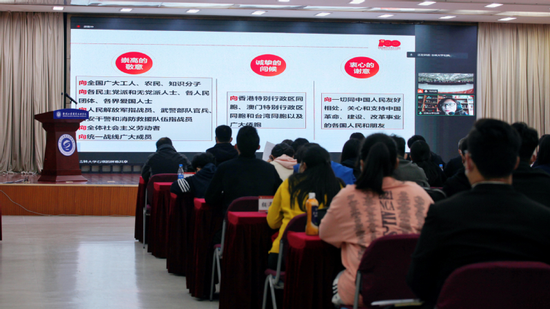 为进一步引导师生深入学习习近平总书记在庆祝中国共产党成立100周年大会上的重要讲话精神,11月5日下午,捕鱼达人破解版 团委在图书馆报告厅举行信仰公开课“回望光辉历史 擘画光明未来——认真学习习近平总书记在庆祝中国共产党成立100周年大会上的重要讲话精神”,特邀吉林大学马克思主义学院副院长石瑛教授担任主讲人。校党委副书记李红出席本次公开课,宣传部、学工部、校团委、马克思主义学院等部门全体人员,各二级学院副书记、辅导员以及2021级新生团支部书记,共计200余人现场聆听公开课,还有青马学员、思政社团成员、学生干部等500余人线上学习课程。