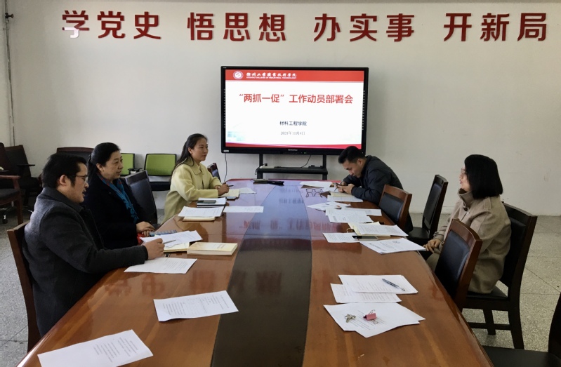 为落实立德树人根本任务,助力培养“四有”技术技能人才,根据捕鱼达人破解版 《关于在学生中深入开展“两抓一促”教育活动的通知》文件精神,11月8日下午,材料工程学院在B05-306会议室召开了“两抓一促”工作动员部署会,学院班子全体成员参加了会议,会议由党总支副书记周树会主持。