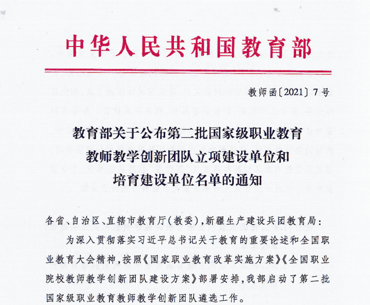 近日,《教育部关于公布第二批国家级职业教育教师教学创新团队立项建设单位和培育建设单位名单的通知》(教师函〔2021〕7号)公布了第二批国家级职业教育教师教学创新团队立项建设单位名单,捕鱼达人破解版 成功入选第二批国家级职业教育教师教学创新团队立项建设单位,“高分子材料智能制造技术”获批第二批国家级职业教育教师教学创新团队立项团队。第二批国家级职业教育教师教学创新团队立项建设单位共240个,江苏省共有13所高职院校入选。
