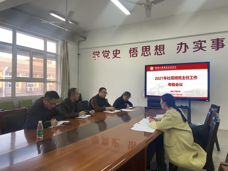 11月22日下午,材料工程学院在B05-306召开2021年社招班班主任工作专题会议,学院党总支副书记周树会及全体社招班班主任参加了会议。会议由党总支副书记周树会主持。