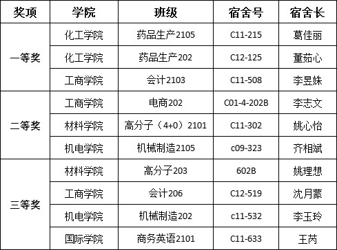 第二十届大学生宿舍文化节“我的宿舍主张”宿舍长能力大赛获奖名单如下: