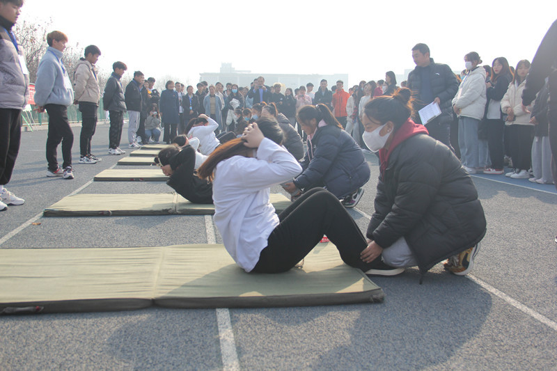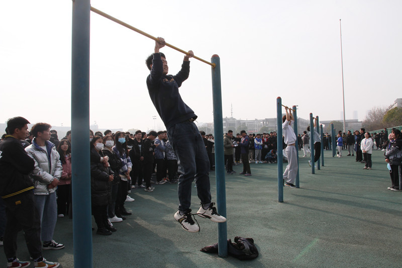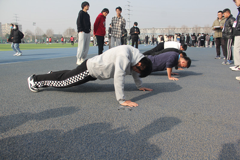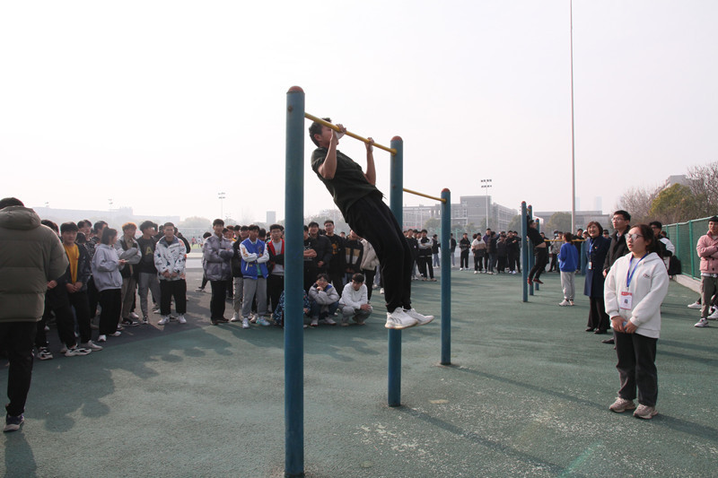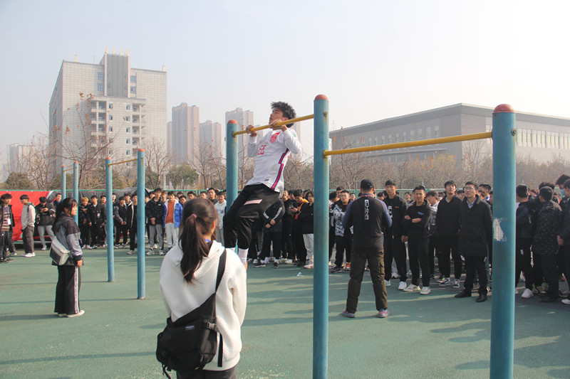 比赛开始前,学工处副处长巩庆伟对本届大学生宿舍文化节的开展情况进行了介绍,对本次比赛的开展提出了具体要求。比赛场地上三个项目同时展开比赛,在引体向上比赛现场,各参赛宿舍通过比拼每个人的引体向上个数完成宿舍的总积分,比赛中他们每个人都努力向上,为宿舍的荣誉而顽强拼搏、竭尽全力,现场加油助威声、喝彩声连成一片。仰卧起坐和俯卧撑区,运动员门屏住呼吸、争分夺秒的快速完成每一个动作,宿舍成员互相加油、互相鼓劲,展现了良好竞赛氛围。通过比赛既提高了同学们参与锻炼的热情,促进学生体质健康水平的提高,更凝聚了宿舍的合力,活跃了校园文化生活。