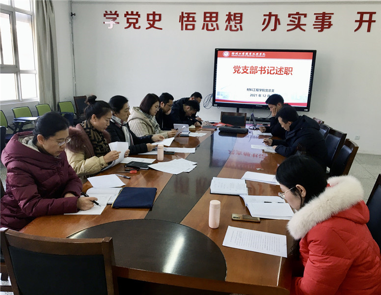 12月28日下午,在材料学院党建工作室开展了党支部书记述职工作。材料总支委员、党支部书记参会,总支书记李素婷主持。