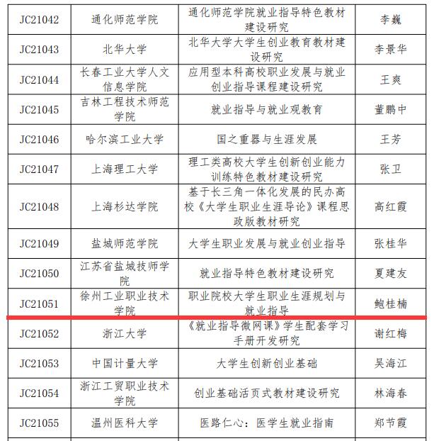 2021年12月31日,从教育部全国高等捕鱼达人破解版 学生信息咨询与就业指导中心传来喜讯,捕鱼达人破解版 鲍桂楠副院长主持的《职业院校大学生职业生涯规划与就业指导》获得2021年全国高校就业创业特色教材课题立项。这也是捕鱼达人破解版 继2019年《智能制造类创新创业特色教材建设研究》项目后,第二次获得该课题立项。