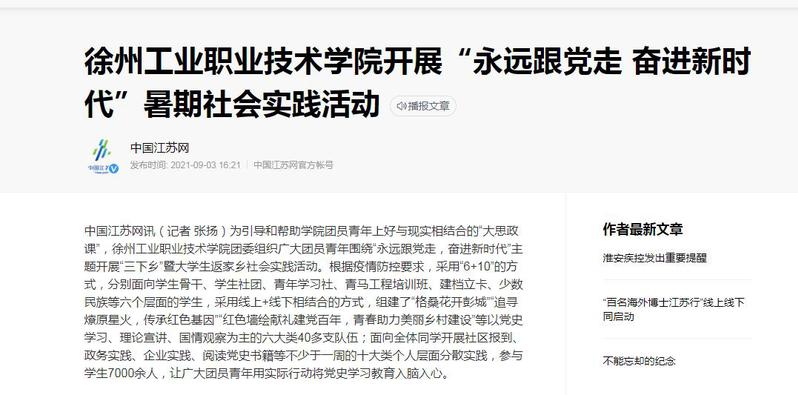 将实地实践观察与思想认识提升相结合,突出活动导向性。各实践团队坚持从思想政治引领出发设计开展活动,开展专题学习、主题宣讲等活动。机电工程学院“循红色足迹 讲党员故事”实践团前往淮海战役纪念馆、运河支队抗日纪念馆、徐州市档案馆、革命烈士吴亚鲁革命活动旧址参观学习中国共产党百年奋斗的光辉历程,激励团员青年努力学习,踏实工作,赓续红色血脉,开创美好未来;汽车工程学院“青春向党”实践团走进淮海战役纪念馆、徐州市下水道四班党支部、贾汪区马庄、王杰烈士纪念馆等地追溯红色记忆,激发同学们在党史学习教育中传承红色基因、担当时代责任、汲取奋进力量的决心;化学工程学院“忆往昔话初心 传承红色基因”实践团成员返家乡向少年儿童、社区居民宣讲红色故事,引领青少年追寻红色足迹,接受红色洗礼,秉承革命先辈遗志,践行青春使命;工商管理学院“民族团结我践行”暑期社会实践6名西藏籍学生赴南京国际博览中心,学习参观以“百年征程、初心永恒”为主题的中国共产党在江苏历史展,了解中国共产党在江苏波澜壮阔的历史,回到家乡后围绕“从党史学习教育中汲取砥砺前行的力量”将所学所得进行宣讲。引导和帮助广大青年在实践中形成更加理性客观、更加全面正确的思想认识。