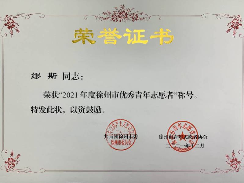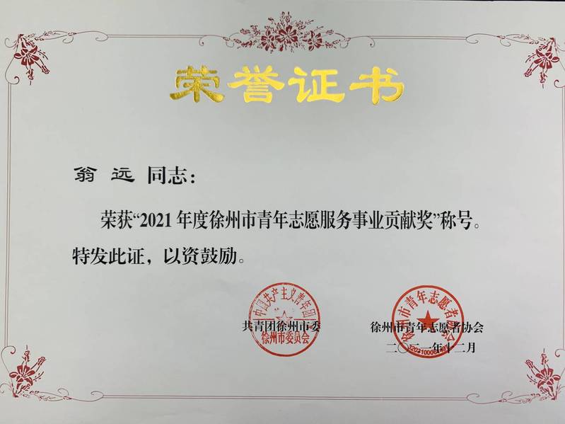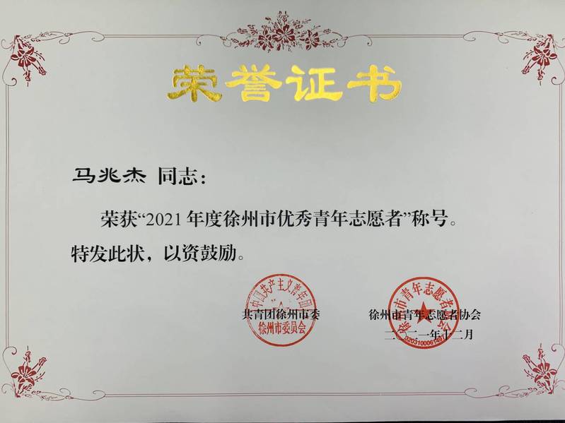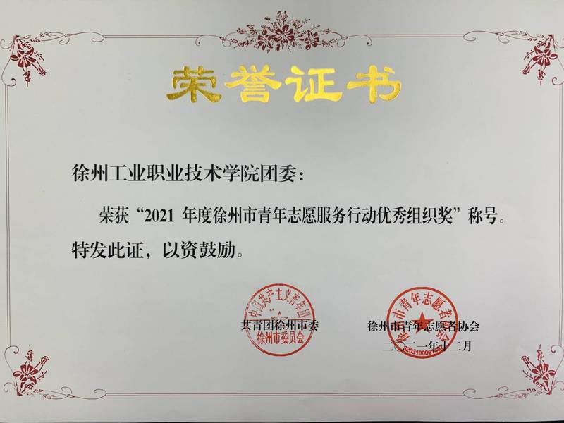近日,在徐州市2021年度青年志愿服务工作表彰中,捕鱼达人破解版 团委荣获“2021年度徐州市青年志愿服务行动优秀组织奖”,汽车工程学院辅导员翁远老师获评“2021年度徐州市青年志愿服务事业贡献奖”称号,缪斯老师获评“2021年度徐州市优秀青年志愿者”称号,高分子材料智能制造技术201班团支部马兆杰同学获评“徐州市优秀青年志愿者”称号。