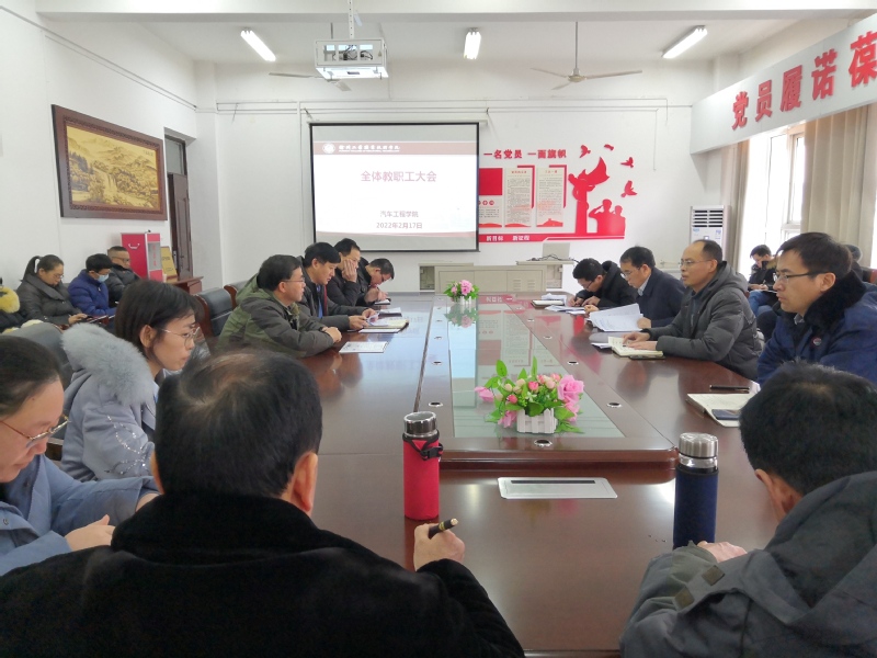2月17日,汽车工程学院在B06-303会议室召开全体教职工大会,汽车工程学院全体教职工参加会议,会议由汽车工程学院院长肖亚杰主持。