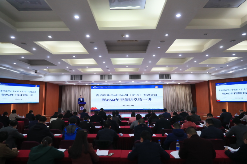 3月9日下午,捕鱼达人破解版 在图书馆报告厅召开党委理论学习中心组(扩大)专题会议暨2022年干部讲堂第一讲,党委书记祝木伟主持会议、领学并作重点发言,党委理论学习中心组全体成员、全体中层干部参加会议。