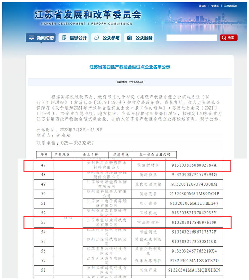 近日,从江苏省发展和改革委员会获悉,与建筑工程学院、化学工程学院联合申报的徐州卧牛山新型防水材料有限公司、江苏中能硅业科技发展有限公司,被确定为江苏省第四批产教融合型试点企业,并纳入江苏省产教融合型企业建设培育库,成为江苏省校企合作新的典范。至此,捕鱼达人破解版 理事会共有四家成员单位获批此项荣誉。