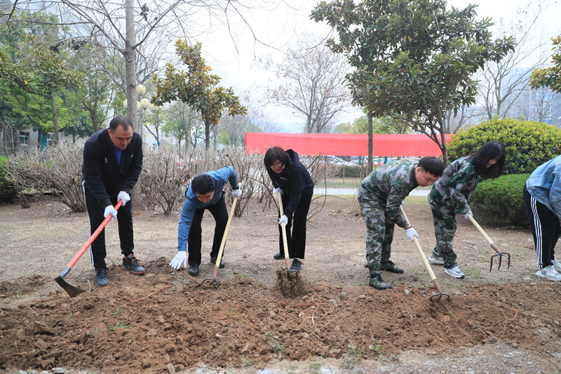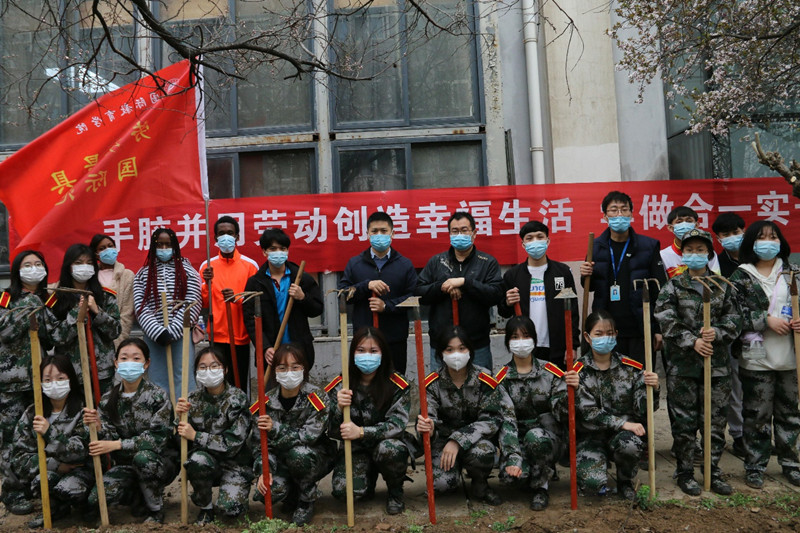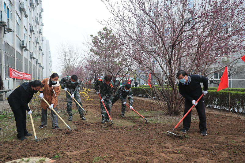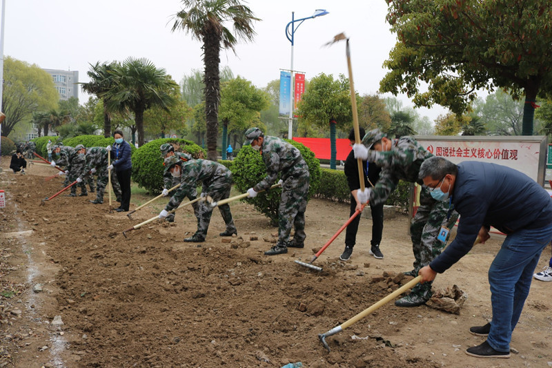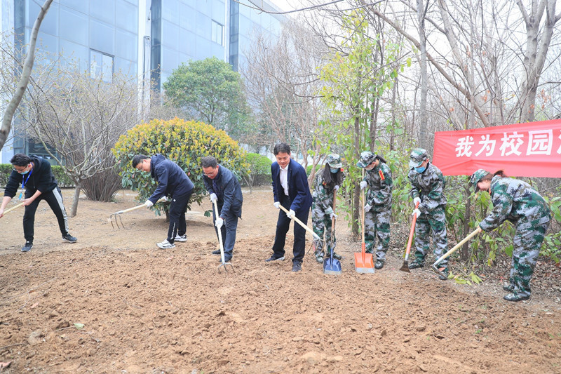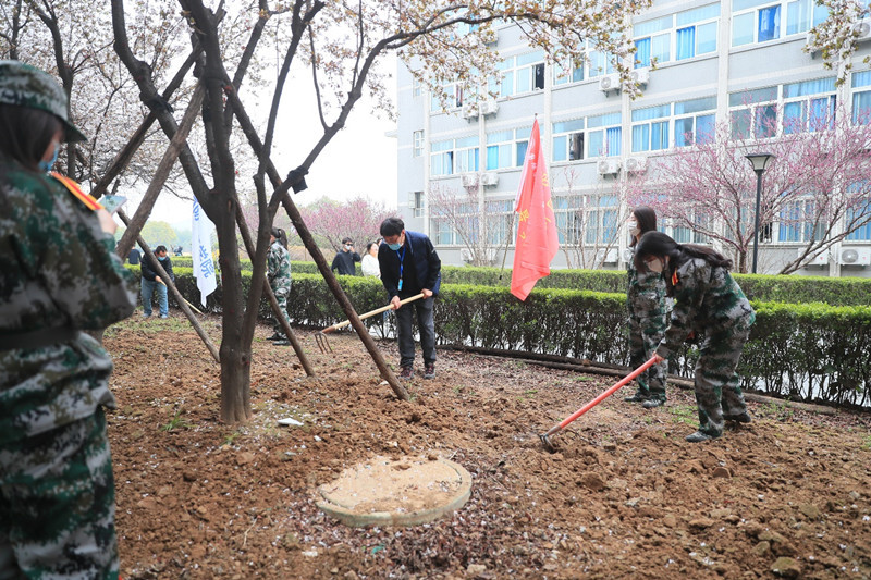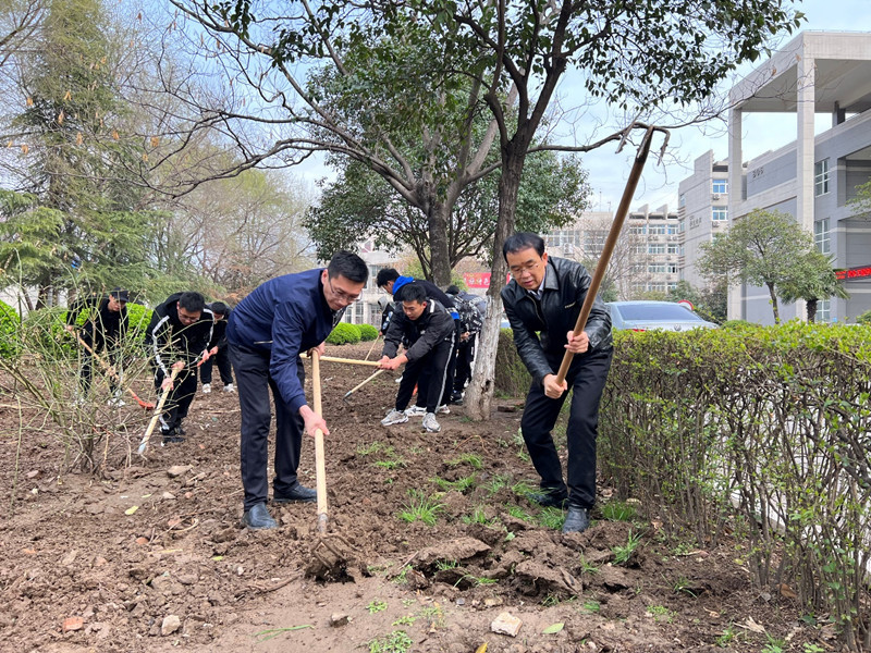 启动仪式结束后,各学院劳动先锋队在学院总支书记的带领下奔赴劳动包干区开展劳动,校领导分别参加了各对接学院的劳动实践活动。劳动现场红旗飘扬,同学们有的抡起三齿耙、有的挥舞老式锄头、有的脚踩铁锹,刨的刨、挖的挖,捡的捡,干的热火朝天,劳动场景构成一幅美丽的校园春耕图。
