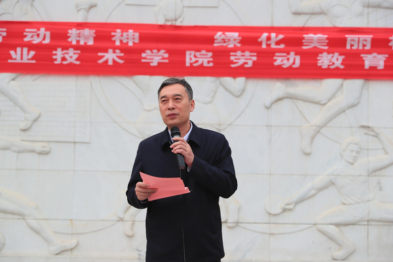 党委书记祝木伟发表动员讲话,他指出劳动是人类区别与动物的标志和尊严所在,更是人类社会存在和发展的基础,劳动教育是中国特色社会主义教育制度不可或缺的内容。不管时空如何变换,时代如何发展,劳动在国家发展、社会发展和人的发展中的根基作用没有改变,劳动创造了人类本身,也创造了光辉灿烂的人类文明,劳动创造了一切。希望青年学生能够在生活学习的过程中大力弘扬崇尚劳动、热爱劳动、辛勤劳动、诚实劳动的劳动精神,积极投身到劳动教育实践活动中去,努力做到以劳树德、以劳增智、以劳强体、以劳育美,以劳创新。以实际行动践行习近平总书记“劳动光荣、技能宝贵、创造伟大”的谆谆嘱托,唱响“劳动最光荣、劳动最崇高、劳动最伟大、劳动最美丽”的时代主旋律。