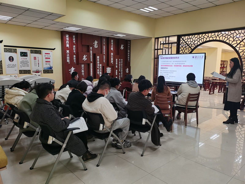 3月4日上午,“春季心理健康工作重点培训会”在九里书院举行,近30名辅导员共同学习了南京大学心理健康教育与研究中心主任陈昌凯关于《春季心理健康工作重点》的培训内容。学习内容主要分为两个部分,一是学习了《教育部2022年工作要点》中关于心理健康教育工作的要求;二是围绕科学识别、实时预警、妥善应对三个方面,学习了春季学期的重要时间节点和重点学生、学生心理危机的日常识别和应对。会上,与会人员结合学生工作案例,分享心理工作感受及培训心得,大家纷纷表示,此次培训干货满满,对于开展好春季心理工作有很大的指导和帮助。
