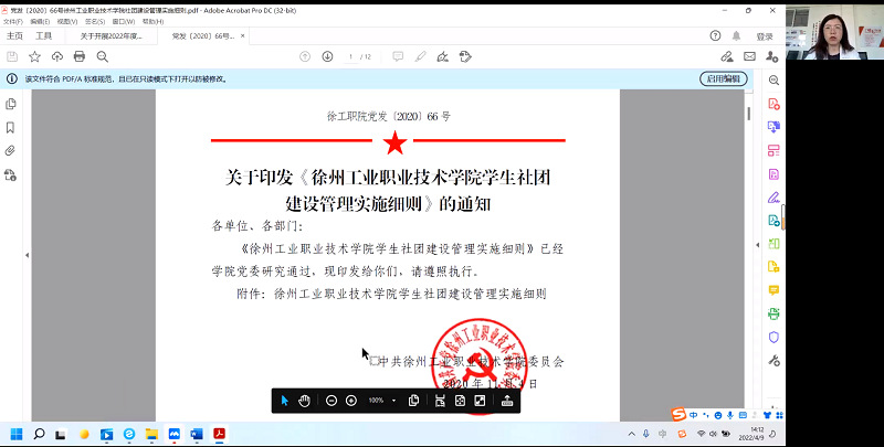 学生社团是捕鱼达人破解版 落实立德树人根本任务、推进素质教育的重要载体。为贯彻落实团省委对学生社团改革的通知要求,充分发挥社团指导教师作用,切实加强捕鱼达人破解版 社团指导教师队伍建设,根据相关工作安排,4月9日下午,校团委组织召开捕鱼达人破解版 学生社团指导教师线上培训会。会议由校团委挂职副书记李心茹主持,校团委书记安莹作主讲,66位社团指导教师参加业务培训。
