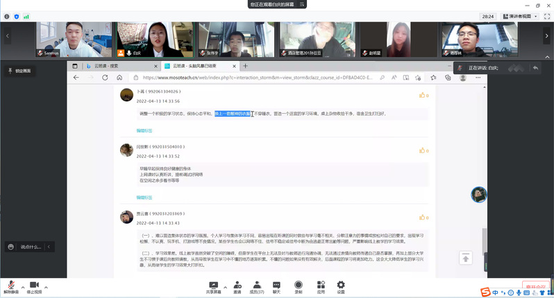 本次团课精心设计了“诵读与分享”“讨论与分析”“反思与计划”等环节,团员青年以接力诵读、交流感悟、研讨对策、集体宣誓等方式,从线上学习、习惯养成、课余生活等方面总结与反思校园封闭管理期间自身的收获与不足,积极分析问题产生的原因,并就“如何解决问题、争做担使命、保安康的‘守护者’、争做宅其身、抱道行的‘修行者’、争做游必有方的‘识途者’”展开热烈讨论。同学们纷纷表示,疫情不是懈怠的理由,要珍惜大学时光,脚踏实地上好课程、养成良好行为习惯、积极充实校园生活,争做“有德、有技、有能、有为”的工院学子。
