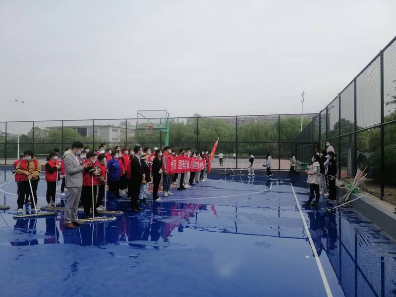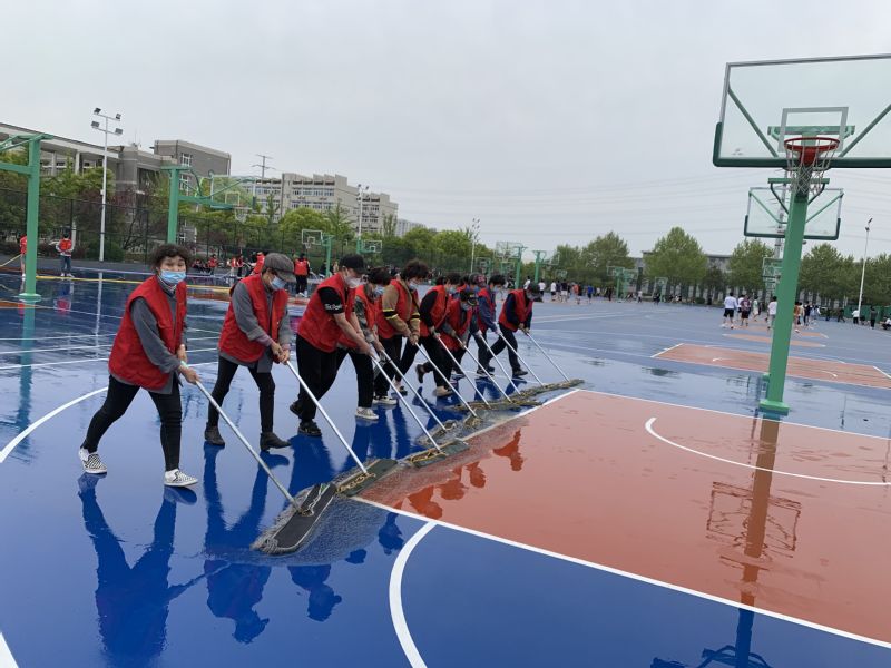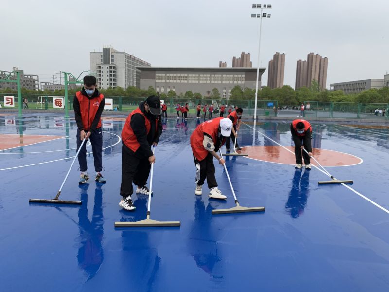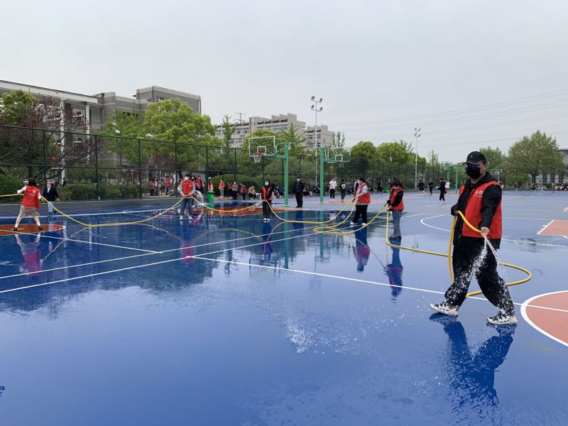 团委征集了72名学生志愿者组建“劳动突击队”,协助开展清洗工作,他们不怕脏、不怕累,经过3个多小时的劳动,运动场地焕然一新。