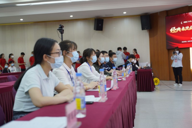 经过初赛选拔,共有来自八个学院的16支队伍进入决赛。各参赛队节目配合默契、亮点纷呈,配合演唱、情境再现、乐器演奏等形式精彩演绎了《我的祖国》、《少年中国说》、《党旗》、《党的赞歌》等经典作品,为观众呈现了一堂“有看点、有意义、有温度、有价值”的视听大课。比赛过程中,参赛选手的表演时而饱含深情、时而慷慨激昂、时而庄重肃穆,表达了青年学子对党和人民的无限热爱和祖国的深情祝福,把线上线下的观众带入一场文化经典之旅。经过现场评委打分,机电工程学院《我的祖国》和建筑学院《百年芳华》获得一等奖,信息工程学院《少年中国说》等5个节目获得二等奖、化学工程学院《英雄的足迹》等5个节目获得三等奖、国际教育学院《红船从南湖启航》等3个节目获得优秀奖。
