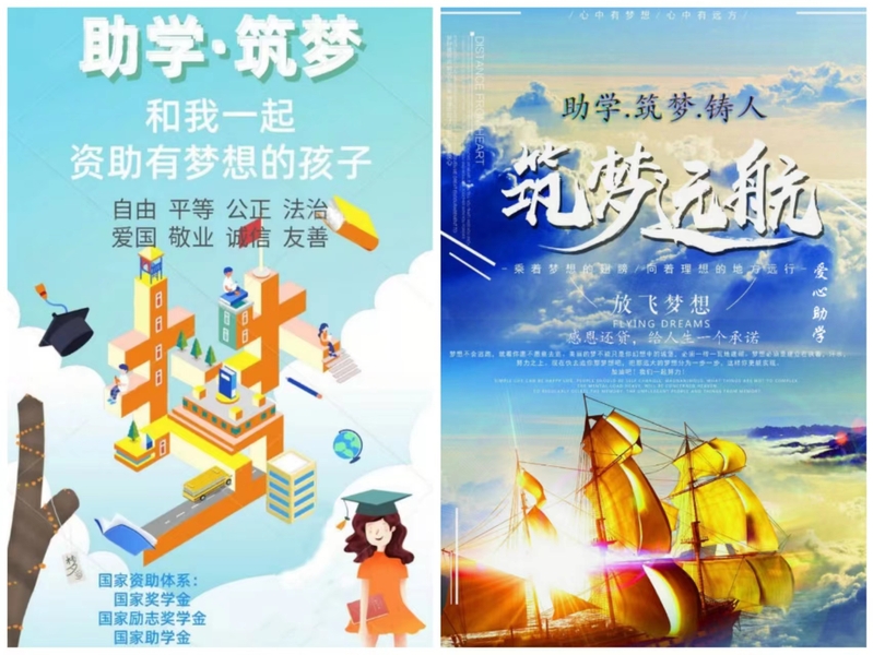 活动自5月中旬开始预选,受到了同学们的热情关注,百余名同学以个人或团队的形式踊跃报名参赛。经评定小组集中评选,在征集的100副优秀作品中,评选出10余幅进行官微线上展示。本届资助诚信艺术作品展,以征集原创作品的形式,集聚了同学们的聪明才智和艺术感悟。如手绘作品《筑梦远航》作品以金色的帆船为主图,象征着资助政策飘向大江南北,象征着党和国家对青年一代不仅是成长过程的呵护与帮扶,还包含对他们成为有知识、有担当、有责任的中国新时代好青年的殷切希望;《助学·筑梦》整个设计结构是以“梦”字为骨骼,在人生不同的阶段,国家资助支撑起“梦”,帮助孩子们实现心中的梦想。同时,社会主义核心价值观融合其中,引导青年人不负青春,不负韶华,不负梦想,不负未来。《托起“心”希望》以手捧红心为主要造型,以大地、朝阳为背景,以温暖的粉色为主色调,寓意着祖国母亲对中华儿女的呵护与大爱,也表达了对莘莘学子在逐梦的道路上,披荆斩棘,一往无前的美好期许。摄影作品《凝望》从图书馆取景,以小视角记录了一位少年正在读书的温馨瞬间,以个体视角,折射出了千千万万个受资助学生的对读书的渴望和昂扬不屈的精神风貌。