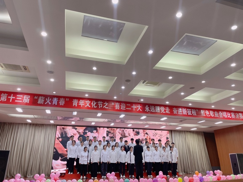 在初赛选拔过程中,各二级学院广泛发动,认真组织,在校园里掀起了班班唱红歌的热潮,丰富校园文化的同时,有力促进了支部凝聚力的提升。决赛的舞台,来自八个学院的12支合唱队伍同台竞技、尽情展示,精彩演绎了必唱曲目《光荣啊,中国共青团》和自选曲目。
