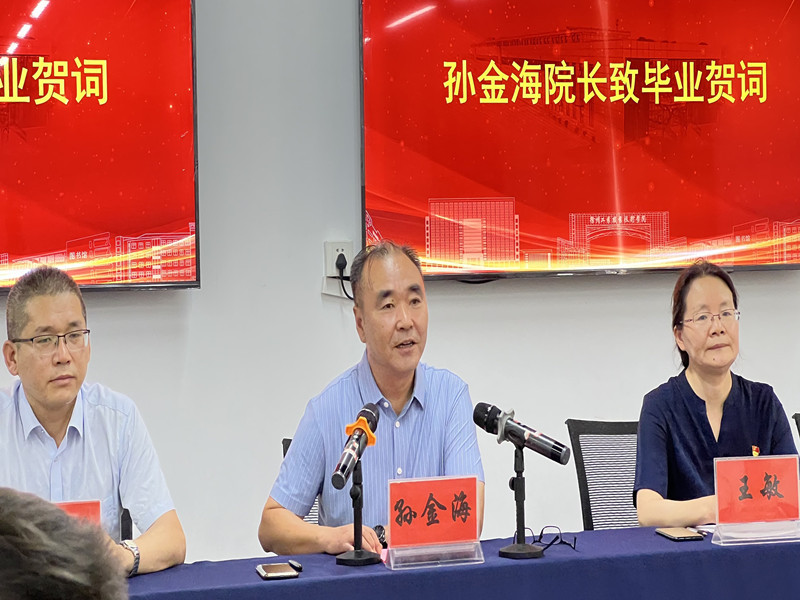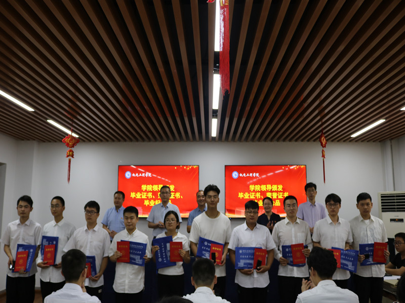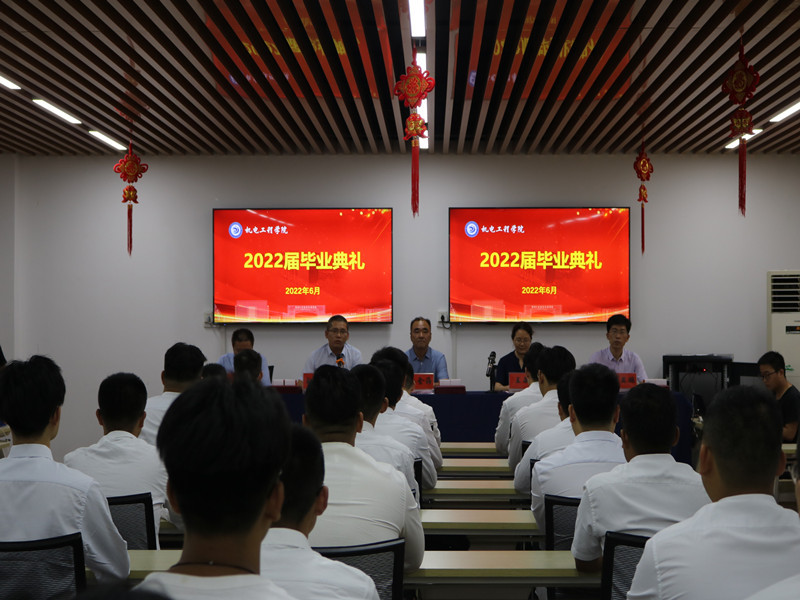 创新毕业典礼形式,强化毕业“仪式感”。毕业典礼,是毕业生身份转换的节点,是师生情感延续的起点,也是传承校园文化传统的重要载体。6月25日上午9:30,机电工程学院以线下线上相结合的形式为全体2022届毕业生举办了一场别具一格的毕业典礼。本次毕业典礼,设置了B16-302主会场和各班分会场,各班分会场以腾讯会议形式在线参加。毕业典礼主会场上,毕业生代表全部正装出席、精神抖擞,分批上台,从学院领导手里庄重地接过毕业证书、毕业印章、专属毕业纪念礼物以及优秀毕业生荣誉证书。孙金海院长致毕业贺词,他语重心长、饱含深情地叮嘱同学们要志存高远、脚踏实地、勇于挑战,敢于担当,并给毕业生提出了“牢记五大责任”的殷切期望。优秀毕业生代表郭东昌代表毕业生做了主题发言,并带领毕业生进行集体毕业宣誓表达了学子们“技能报国,逐梦远航”的决心。最后,毕业典礼在校歌的齐唱声中结束。毕业典礼结束后,孙金海院长又逐一深入各班为毕业生颁发毕业证,让每一个毕业生都感受到最直观、最强烈、最庄重的的毕业仪式感。