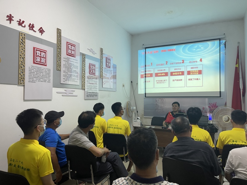 实践团第一站来到九里街道孤山北社区。在社区工作人员的带领下,实践团参观了社区文化展墙,对社区的变迁、文化特色、党建活动等情况有了深入的了解和学习。随后,实践团在社区党建活动室开展理论宣讲。辅导员魏宇川结合《中共中央国务院关于加快建设全国统一大市场的意见》这一政策,以《如何看待全国统一大市场》为题,多维度解析的政策文件;党员倪凯达同学以一名零零后的视角,结合自己的成长经历,以《礼赞新时代奋进新征程》为主题,分享了自己的所见所闻,抒发了民族自豪感;党员时崇同学结合自身的专业,做《喜迎二十大奋进新征程》主题演讲,回顾了21世纪我国取得的各项成就,表达了自己作为一名新时代青年,技能报国的决心。最后,双方在疫情防控常态化的背景下,如何有效开展理论学习,进行了交流、讨论。