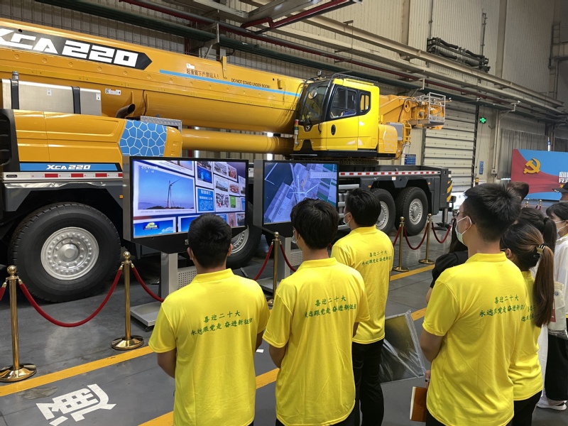 循总书记足迹,传承工匠精神。实践团来到徐工重型,参观了汽车起重机从原材料加工到生产装配直至产品成型的全部流程,观看了徐工重型的宣传视频,并在习近平总书记操作过的大型起重机械车前合影留念。